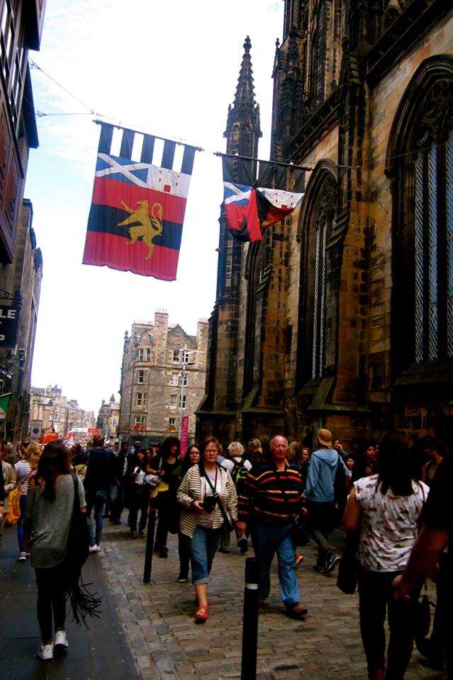 After the castle, we walked along The Royal Mile. The royal mile is a main cobblestone street in the old town. It has shops, restaurants and pubs. We passed by the scotch whisky experience, St Giles Cathedral and then along the shops in the Royal Mile. I bought two water color posters of the Royal Mile. During august, the Edinburgh International Festival is held, so the street was extra interesting. I was so amused at the cosplayers, one even dressed up as Stephen Hawkings. He was on a wheelchair and the world’s most famous sheep, Dolly, was with him. I would almost believe it. π But the winner was the scottish bagpiper, now which tourist wouldnt want a picture taken with a man on a skirt?